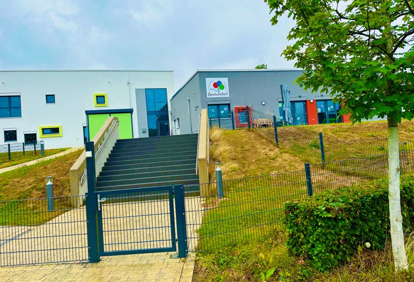Dieser ist nun am Arzberger Berg, zwischen Schule, Bürgerhaus, Bergbräu, Altenheim und Schwimmbad zu finden. Sozusagen im Herzen Arzbergs, dort wo das Leben, das Lernen, die Freizeit und Kultur stattfinden. Jede Altersstufe hat dort seinen eigenen Bereich der altersgerecht eingerichtet ist. Bei der Planung des Kinderhauses lag uns vor allem genügend Bewegungsfreiraum für die Kinder am Herzen und so hat das Kinderhaus für jeden Bereich einen großzügigen Spielflur und eine gemeinsame Turnhalle.